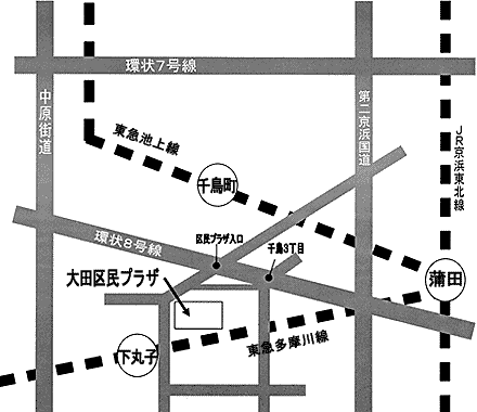 ★電車をご利用の場合* ・東急多摩川線 蒲田・多摩川から3つ目 「下丸子」駅下車、目の前。 (蒲田方面からお越しの方は 踏切を渡ってください。) ・東急池上線 「千鳥町駅」下車徒歩7分 ★一般の方の駐車場は ありません。 駐輪場はございます。